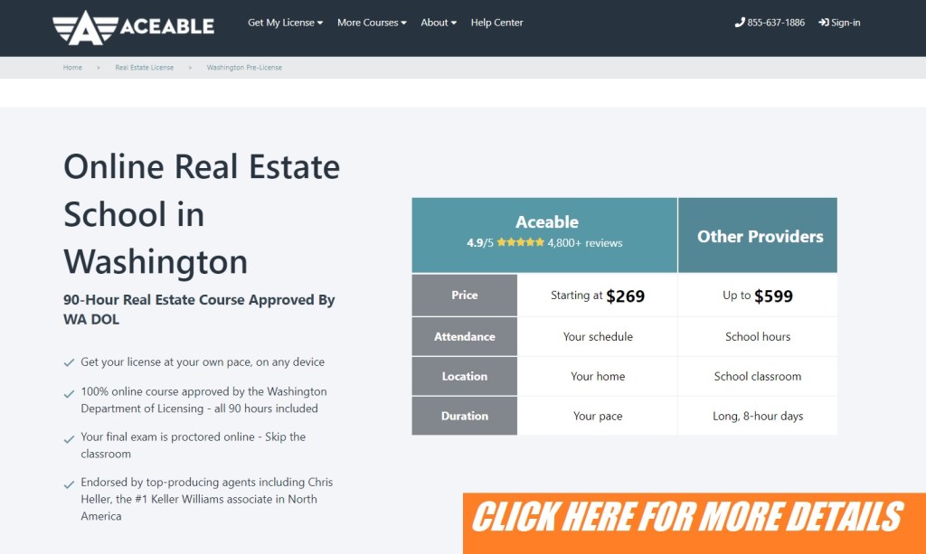 While most other real estate schools make you feel like you are receiving a mass-produced course, Aceable has put in the extra effort to create a thoughtful, personable program that keeps you motivated. They have a variety of time-saving tools to help you study more efficiently. If you have a busy schedule or working a full-time job, this program will help you stay focused and finish at a good pace.